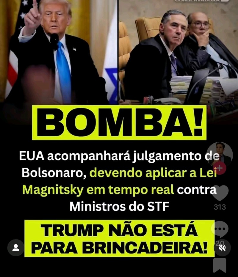 O presidente Donald Trump informou que vai acompanhar de perto tudo do julgamento do presidente Jair Bolsonaro. Disse que irá aplicar a lei magnitsky de acordo com as decisões de cada ministro.