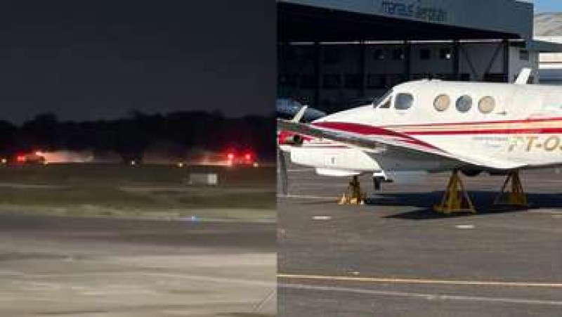 Avião de pequeno porte faz pouso de emergência no aeroporto de Manaus; vídeo mostra o momento. O caso foi registrado na noite desta sexta-feira, 22; o piloto comunicou que teve problema no trem de pouso e precisou gastar combustível no ar antes da manobra. O problema com o avião bimotor, modelo Beechcraft King Air, causou a suspensão temporária dos pousos e decolagens no local. Apesar do susto, a aeronave conseguiu pousar com segurança no aeroporto; três pessoas estavam a bordo e não há informações sobre feridos. Mais de 30 agentes do Corpo de Bombeiros ficaram de prontidão já na pista e fizeram o resfriamento do avião após a manobra de emergência. Imagens cedidas ao Terra: Reprodução/aviacaoamazonia/Instagram www.aviacaoamazonia.com.br Reprodução/manaus_pop/X