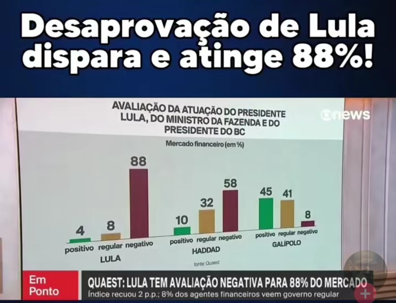 A nova pesquisa divulgada pela Quaest revelou que a desaprovação do presidente Luiz Inácio Lula da Silva atingiu 88% no mercado financeiro. Apenas 4% dos agentes consultados avaliaram o governo de forma positiva, enquanto 8% consideraram a gestão regular. O levantamento mostra um quadro de forte insatisfação entre investidores e economistas, refletindo desconfiança em relação às políticas econômicas atuais.